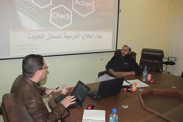 وتبعا لذلك فقد ركز عرض فقرة دور الخلايا الفرعية الذي تقدم بها الأستاذ أيت عودية بلخير على ضرورة اعتبار أن أحد أبرز مهام خلايا الجودة المساعدة والتنسيق مع إدارة الجامعة والكلية، من أجل تحقيق المستوى المطلوب من الجودة، ودعم عملية التحسن الدائم المستمر لأداء الجامعة، وإعدادها لعملية التقييم الخارجي مستقبلا، والذي ستتكفل به مستقبلا هيئة خارجية مستقلة، موضحا أن مهمة خلية ضمان الجودة ليست مهمة تدقيق ورقابة بل هي العمل على التعاون الداخلي من أجل تشخيص موضوعي للواقع، ثم العمل على تثمين نقاط القوة ومعالجة الاختلالات والنقائص، وفق المرجع الوطني لضمان الجودة الداخلية بمؤسسات التعليم العالي.